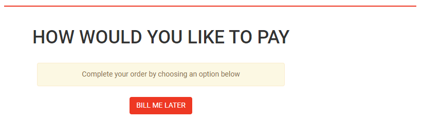 Once the confirmation has been made you will be presented with How would you like to pay screen. Click on ‘Bill Me Later’